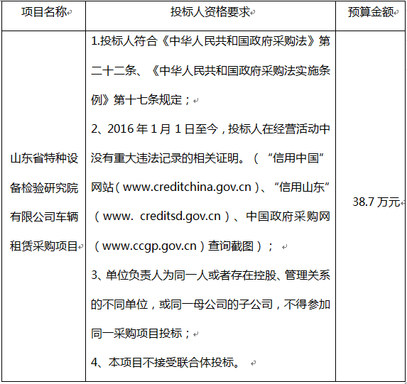 一、采購項目名稱:山東省特種設(shè)備檢驗研究院有限公司車輛租賃采購項目
