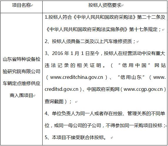 一、采購(gòu)項(xiàng)目名稱:山東省特種設(shè)備檢驗(yàn)研究院有限公司車輛定點(diǎn)維修