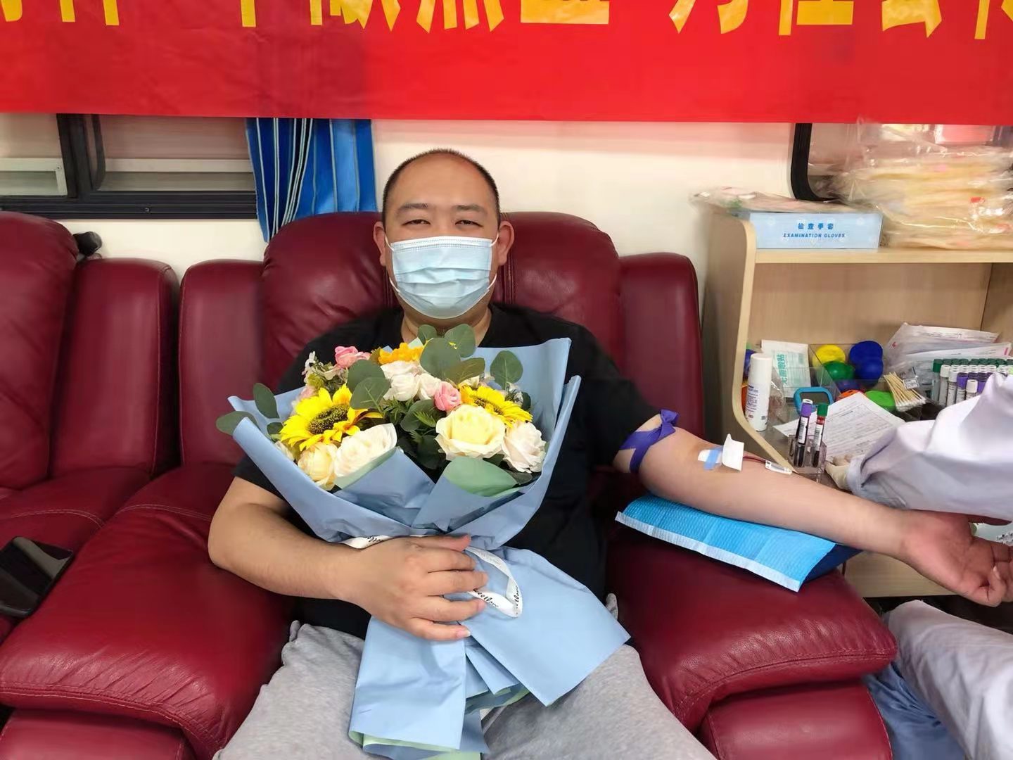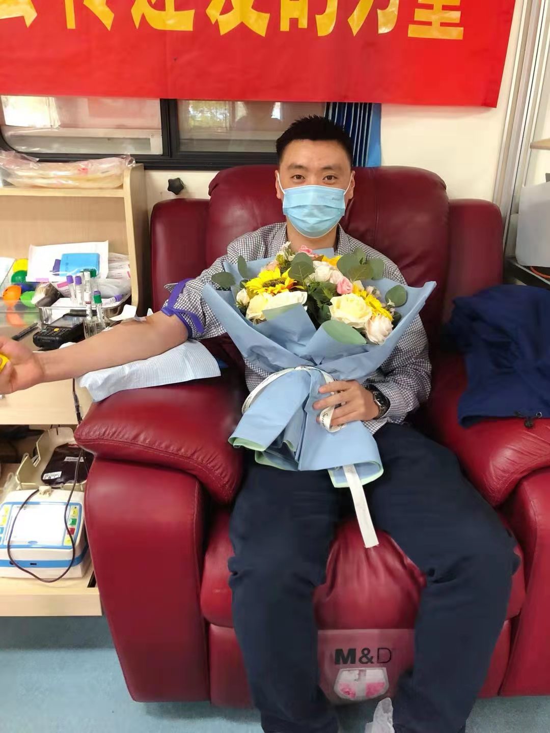 前來獻血的志愿者們依次登記個人信息、量血壓、驗血、等待化驗結(jié)果、獻血,一切井然有序、有條不紊地進行。愛心血站中,大家輪流挽起臂膀,捐獻熱血。血站的醫(yī)護人員一邊采血,一邊仔細地觀察著大家的情況,適時地遞上葡萄糖水,并交代獻血后的注意事項。查體化驗合格者都參與了本次獻血活動,四人無償獻血量總量達2000毫升。